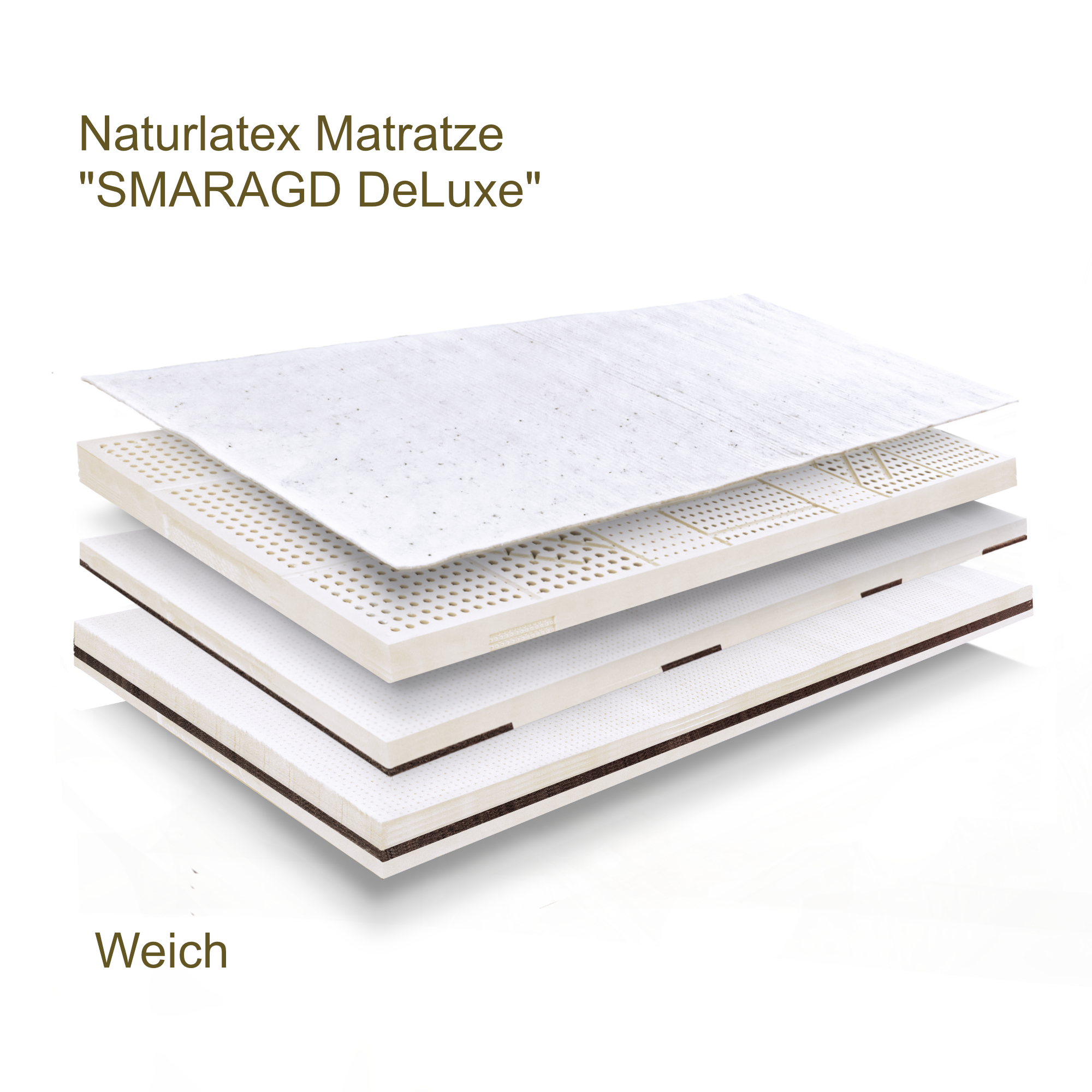 4 cm Naturkautschuk mit 2 cm Kokos-Latex und 2 cm Naturkautschuk weich - obenauf gelegt vor allem für Bauch- und Rückenschläfer